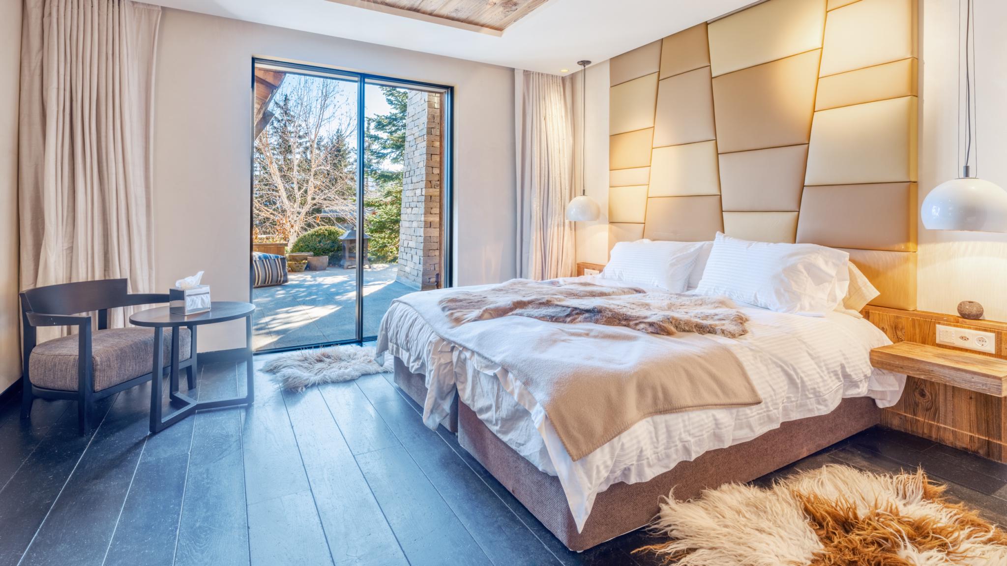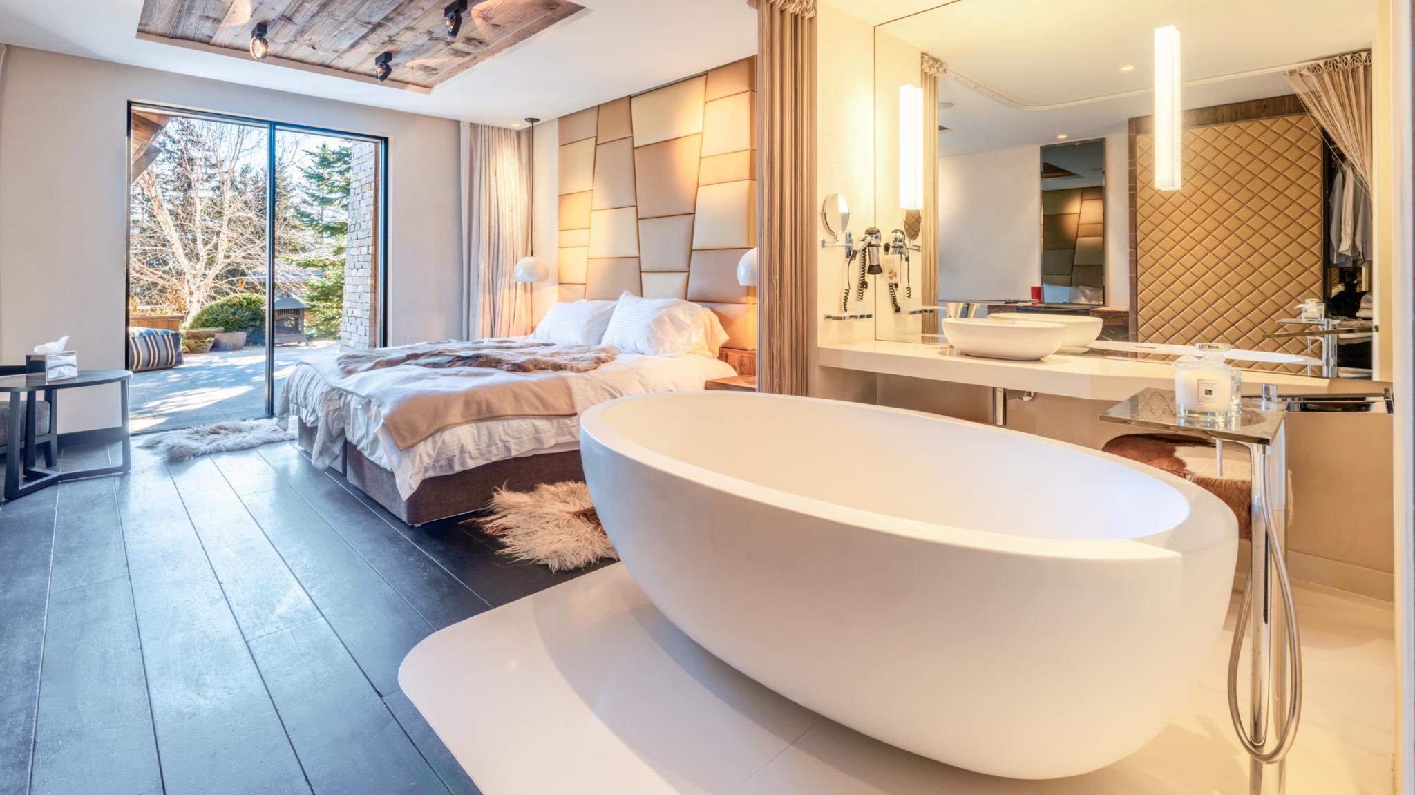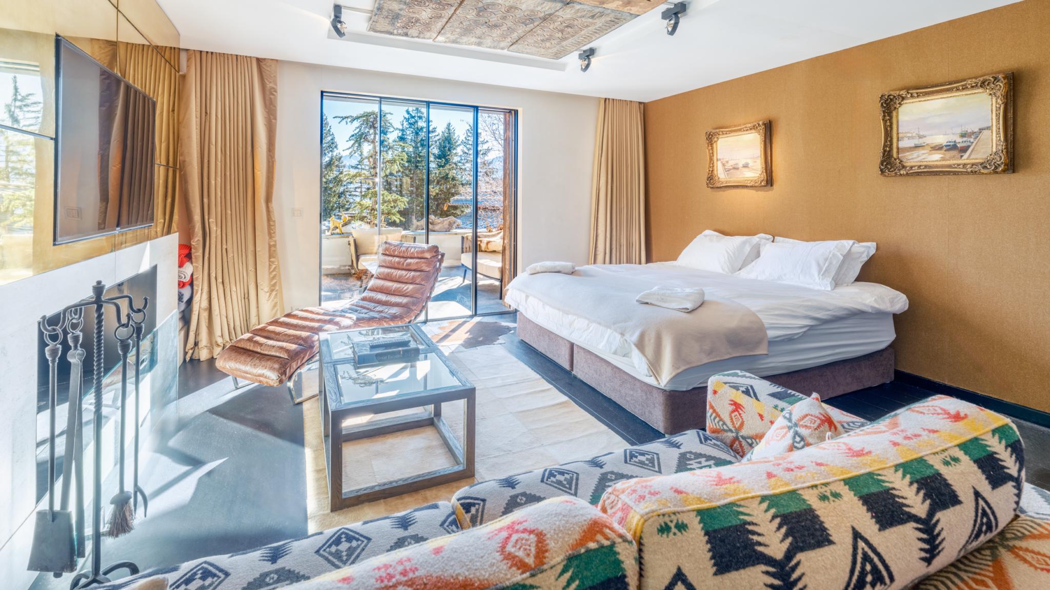 Accueillant jusqu'à 24 invités, ce chalet d'exception offre 12 chambres avec salles de bain attenantes, dont 4 suites impériales, ainsi qu'une chambre avec lits superposés pour 6 enfants.