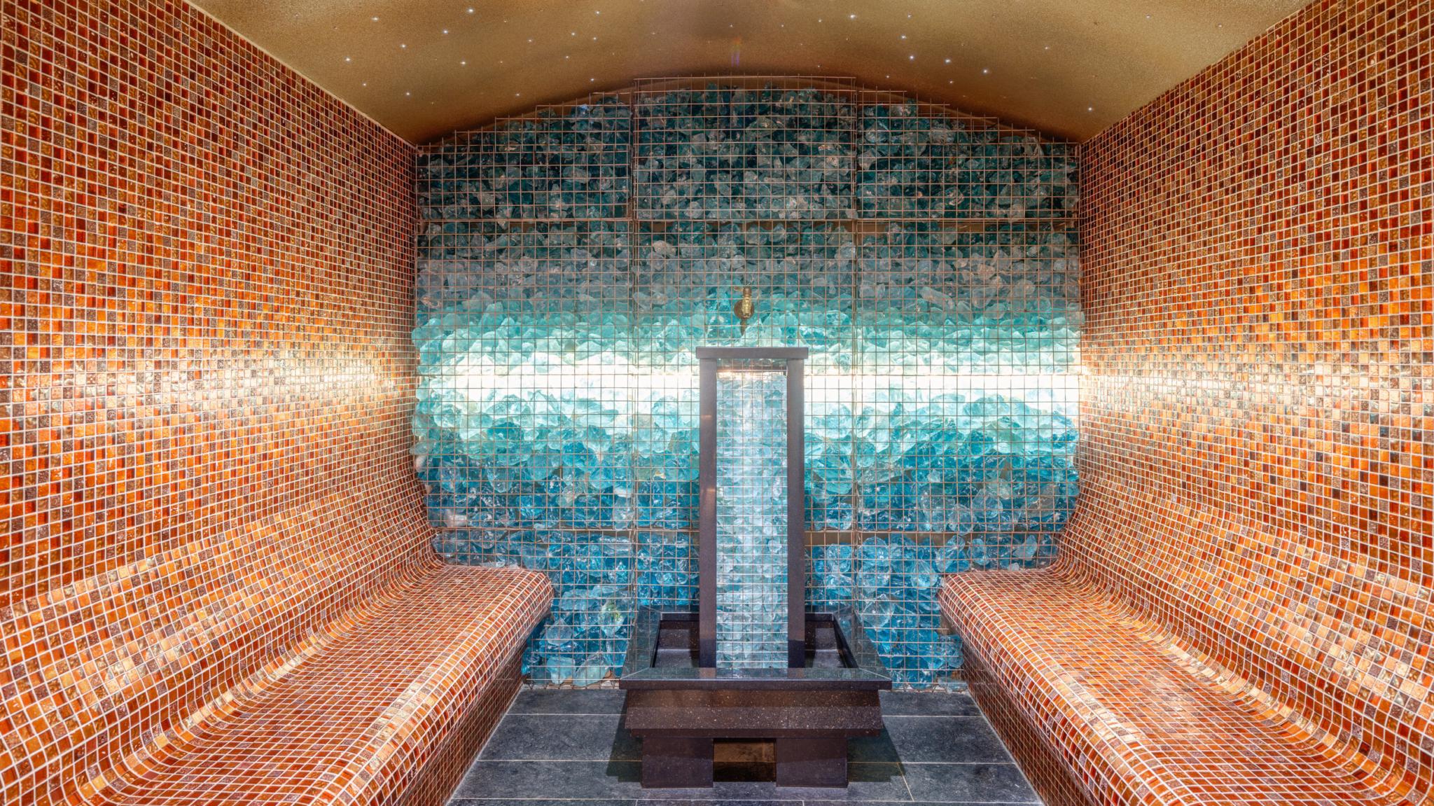 - Espaces communs : Piscine intérieure, sauna, hammam, salle de repos, salle de massage et lounge avec bar
